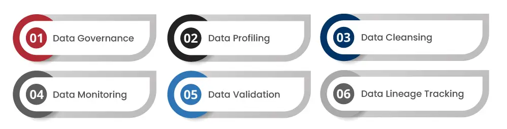 • Effective data quality management helps in AI governance by enabling enterprises to check, clean, and monitor their data for reliability and accuracy.